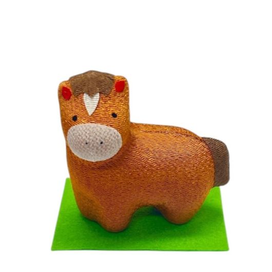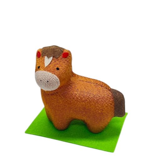 ほのぼのとした温かみのある表情が心を和ませてくれる午(馬)の置物です。付属の緑の敷物は草原を思わせる鮮やかなカラーで午(馬)をより魅力的に引き立てます。